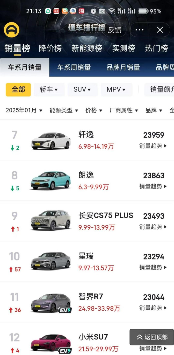 让我们先来看看这组令人震惊的数据:1月份,吉利星越L销量突破2.9万辆,首次登顶全国汽车单月销量冠军宝座。紧随其后的是吉利另一款小型电动车星愿,凭借高性价比和时尚设计,狂揽2.8万辆的销量,成为全国汽车销量的亚军。除了这两匹黑马,吉利旗下还有星瑞、博越L和银河星舰三款车型的销量都超过了2万辆。这五款车的总销量几乎占据了吉利1月份总销量的一半,如此强大的产品矩阵,在国内车企中实属罕见。